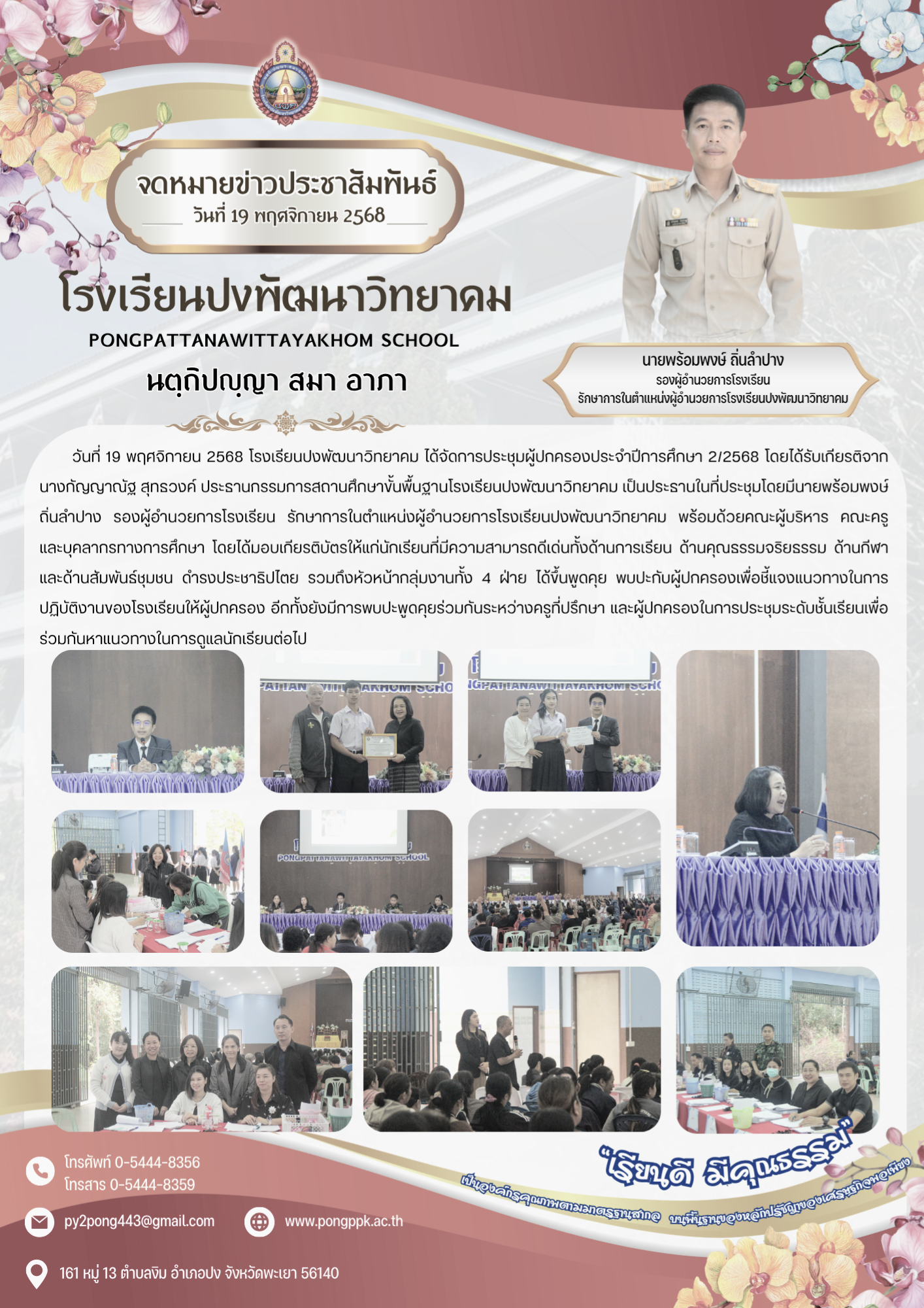 โรงเรียนปงพัฒนาวิทยาคมจัดการประชุมผู้ปกครองประจำปีการศึกษา 2/2568
