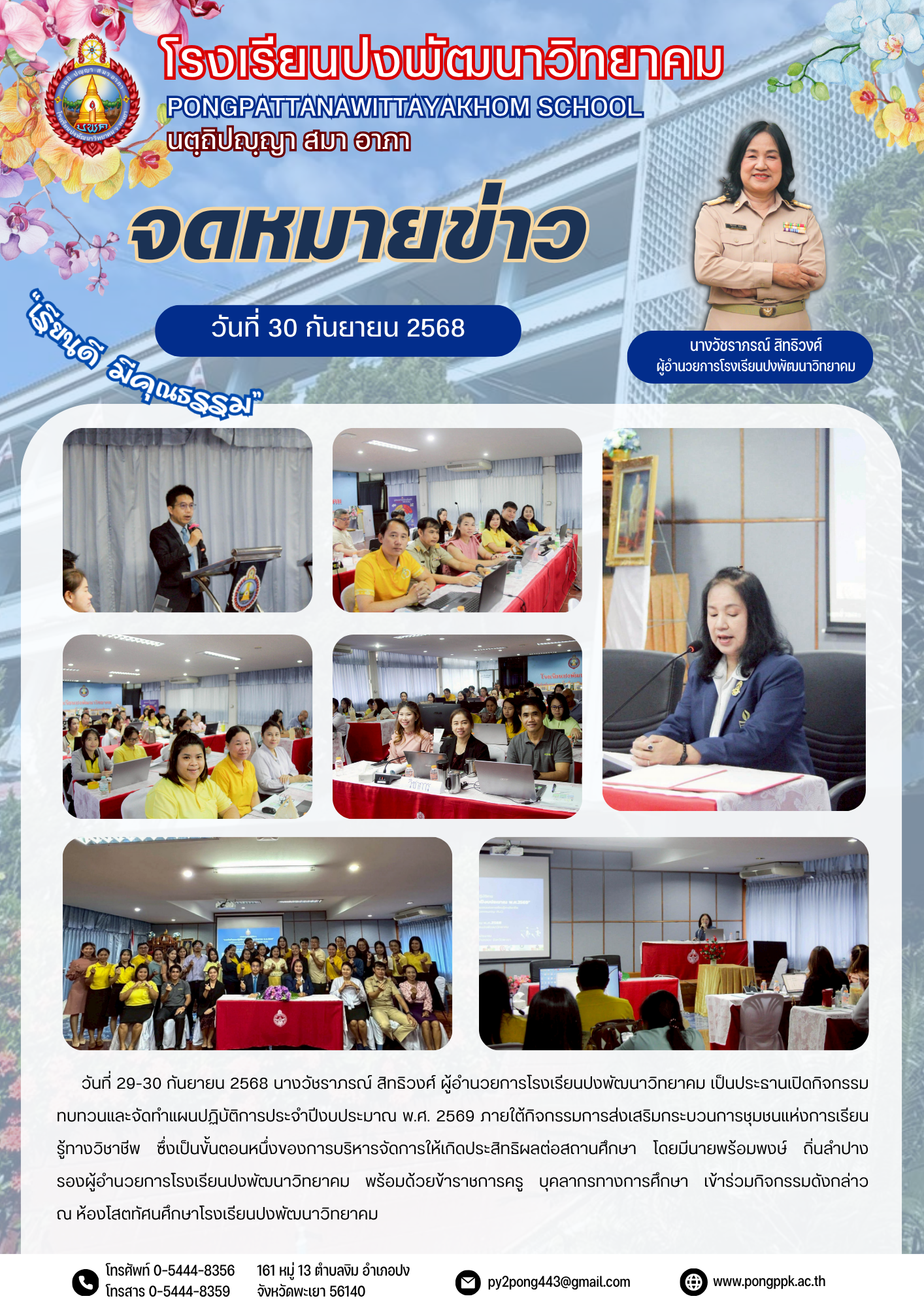 โรงเรียนปงพัฒนาวิทยาคมจัดกิจกรรมทบทวนและจัดทำแผนปฏิบัติการประจำปีงบประมาณ พ.ศ. 2569