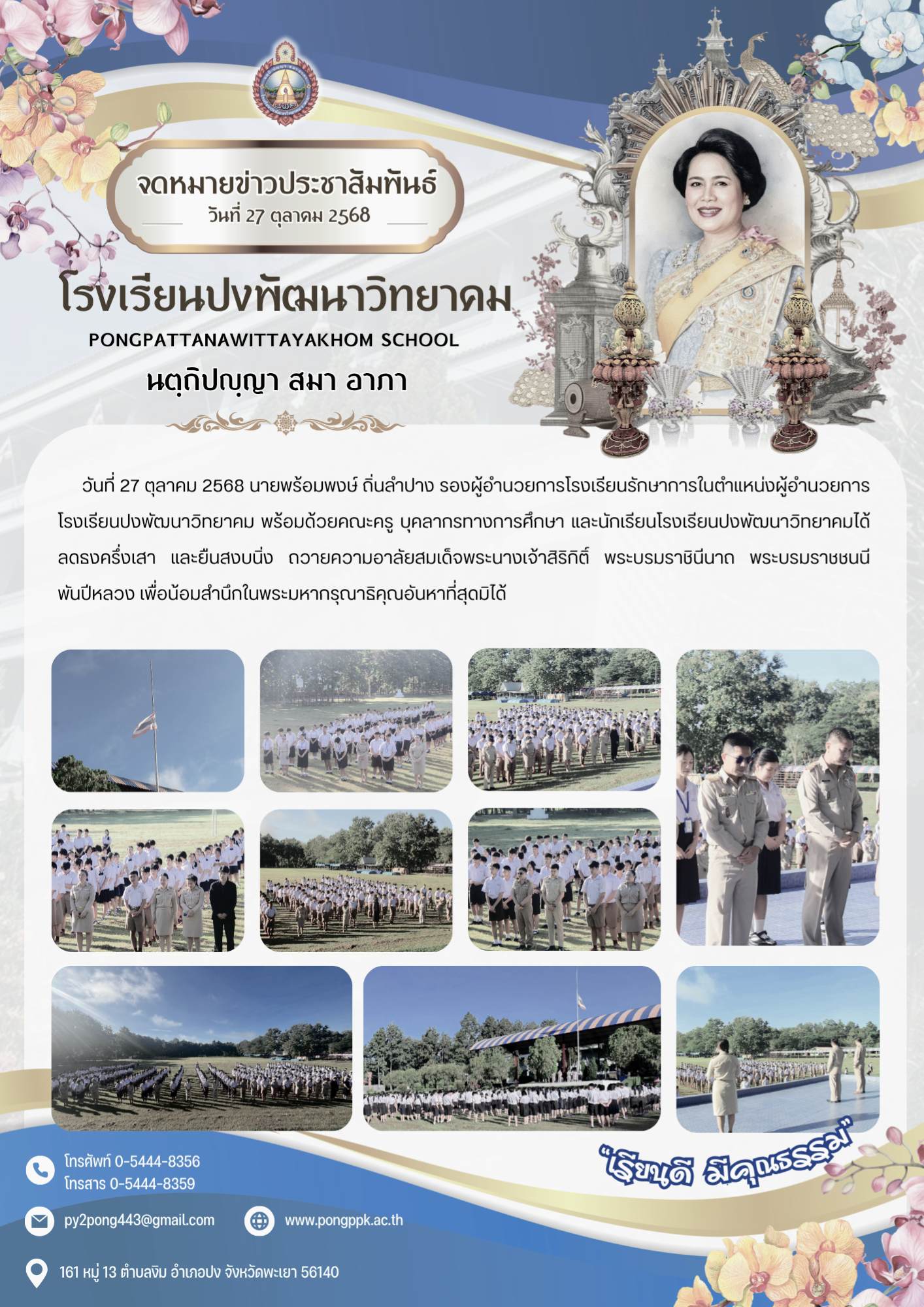 โรงเรียนปงพัฒนาวิทยาคมถวายความอาลัยสมเด็จพระนางเจ้าสิริกิติ์ พระบรมราชินีนาถ พระบรมราชชนนีพันปีหลวง