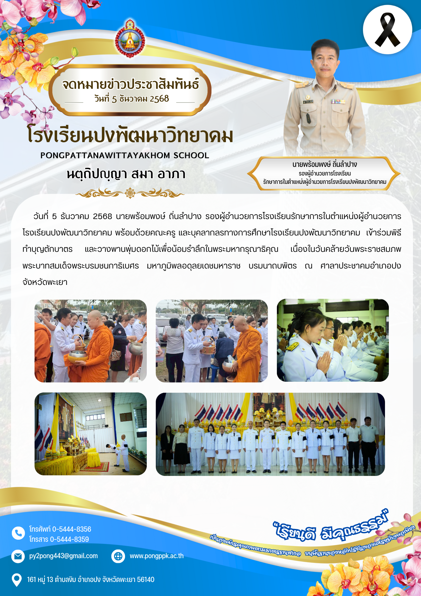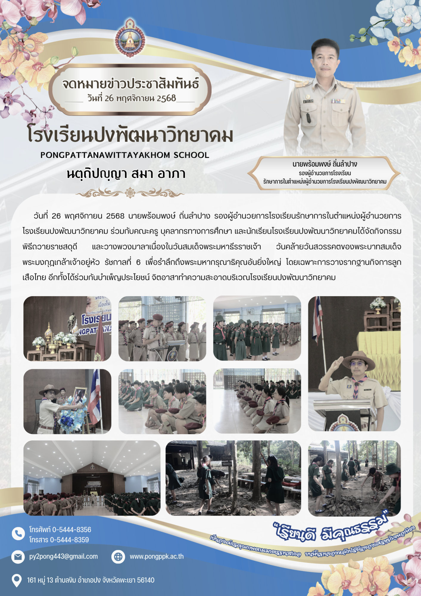 โรงเรียนปงพัฒนาวิทยาคมจัดกิจกรรมพิธีถวายราชสดุดีเนื่องในวันสมเด็จพระมหาธีรราชเจ้า