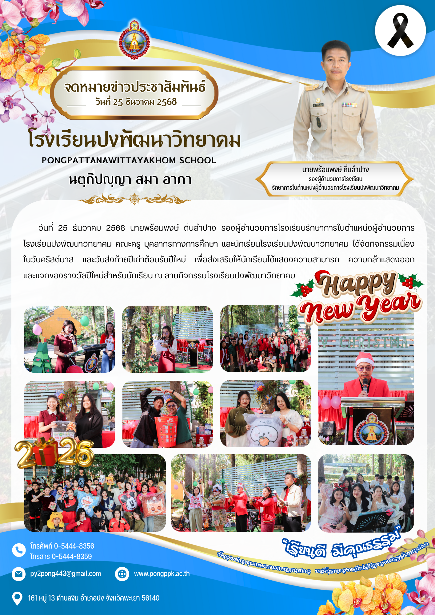 โรงเรียนปงพัฒนาวิทยาคมได้จัดกิจกรรมวันคริสต์มาสและวันส่งท้ายปีเก่าต้อนรับปีใหม่